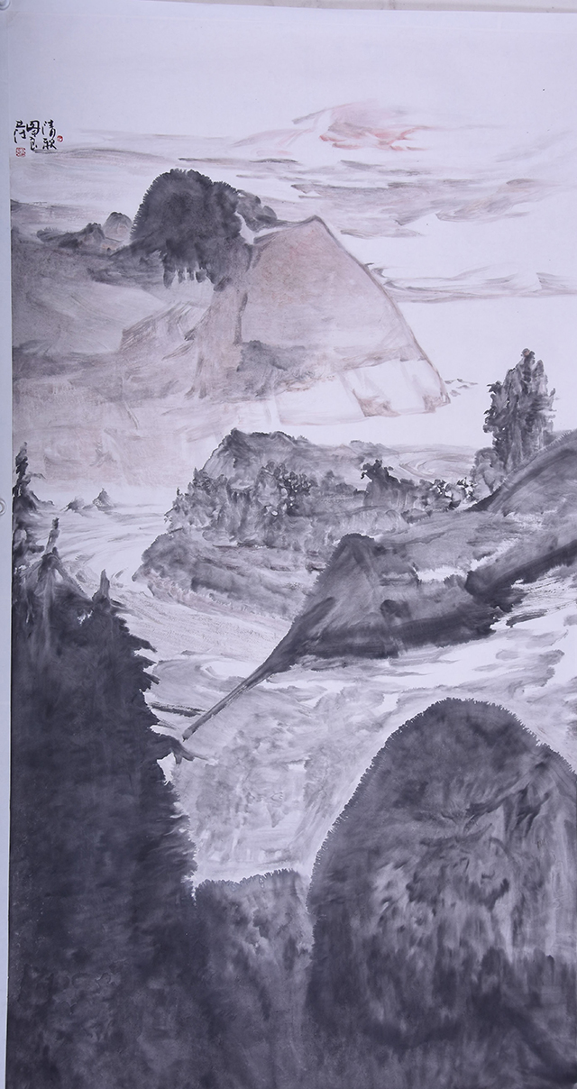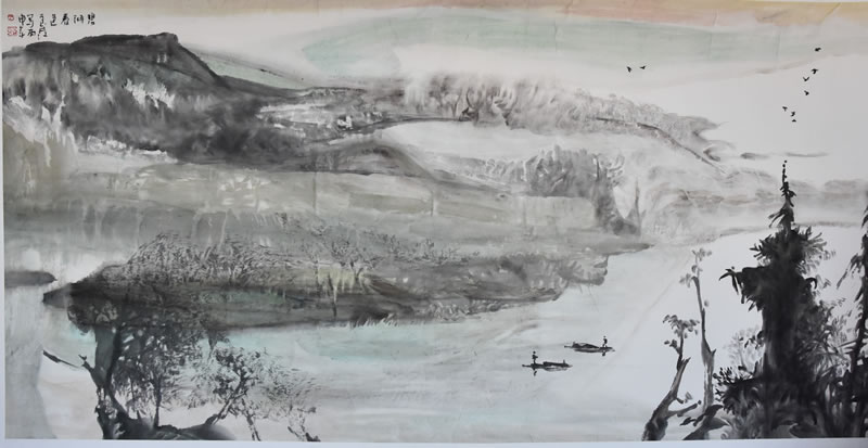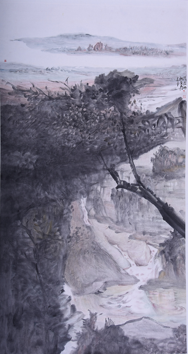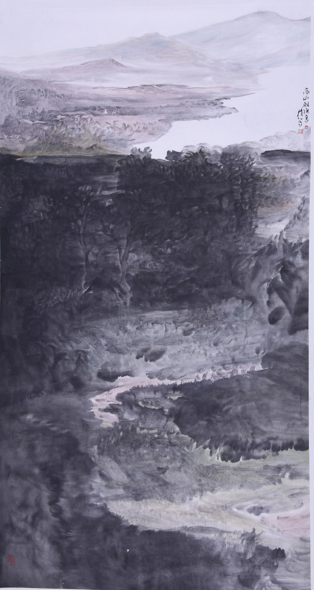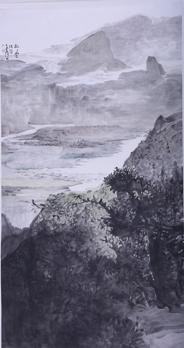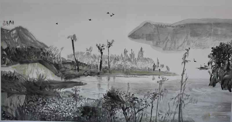 吴良发的山水画,有着鲜明的个人风格和时代印记。在他的山水画中,已经找不到某家某派山水画的印痕,他已经与古典形态的山水画拉开了明显的距离。从笔墨形态、表现方法到图式结构,都是由对大自然的独特感悟中创造出来的,他的没骨山水,立骨在心,弱化线骨,强化笔骨,文脉自信,根系写意,画风独立,画格品上,集气韵.意境.胸象一体...