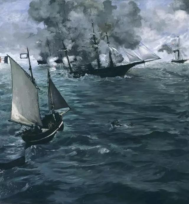 ▲丢朗-吕厄一生买了大约200件马奈的作品,包括他在1864年绘制的《奇尔沙治号和阿拉巴马号之役》