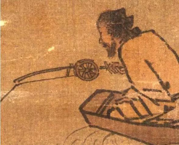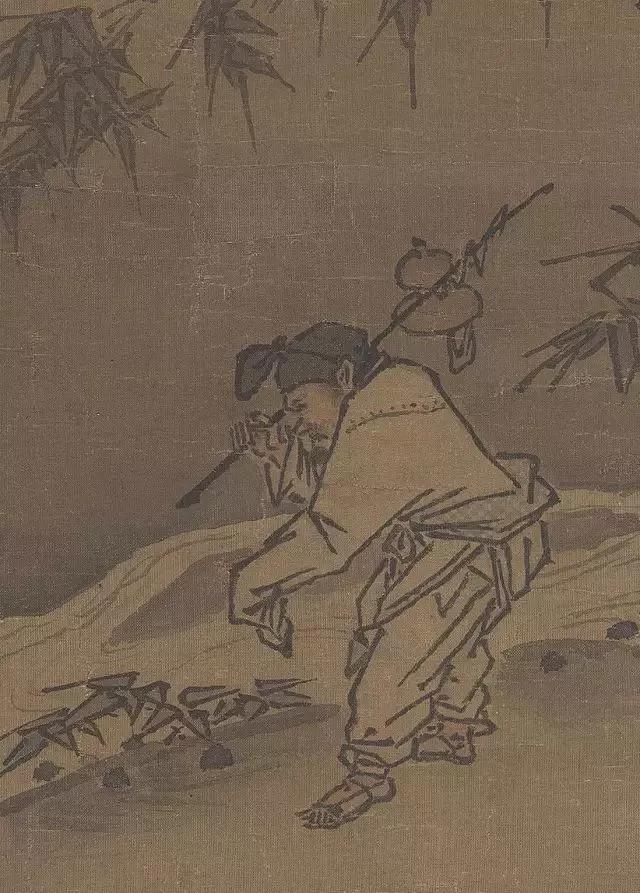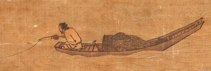 天气虽有些寒意,但渔翁仍保持谨慎。马远呈现的是他的侧面,不过画面放大后,我们还是可以从渔翁的眼角与神态感受到他的全神贯注。