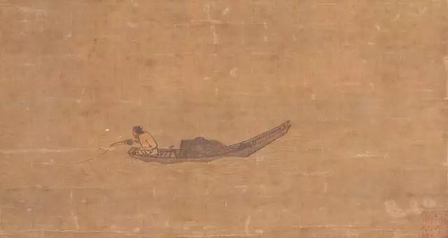 身着长衣的渔翁,身体并不舒展,而是团坐在船的一角,江上寒意萧瑟的气氛、渺远的意境和想象余地跃然纸上。
