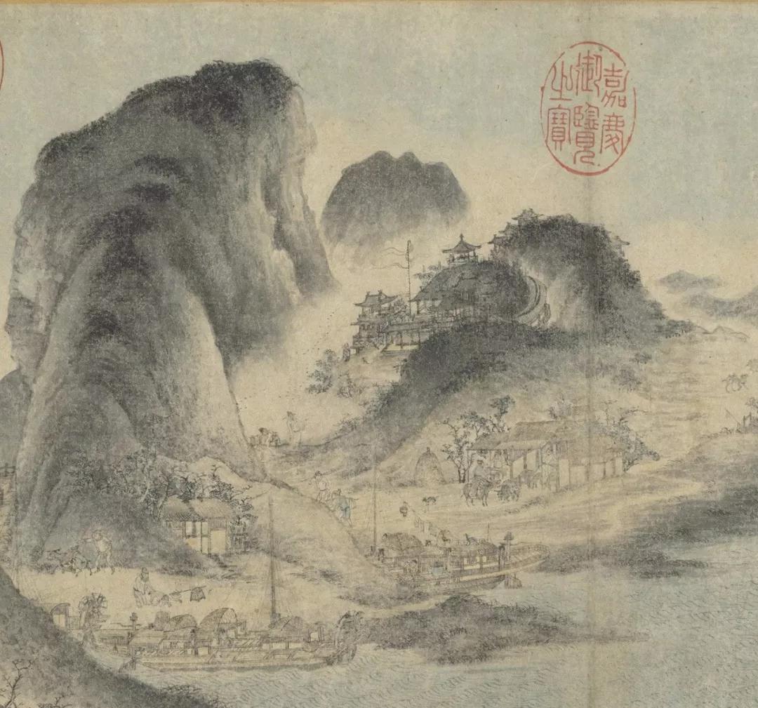 《江帆山市图》 佚名 28.6 x 44.1 cm 台北故宫博物院藏