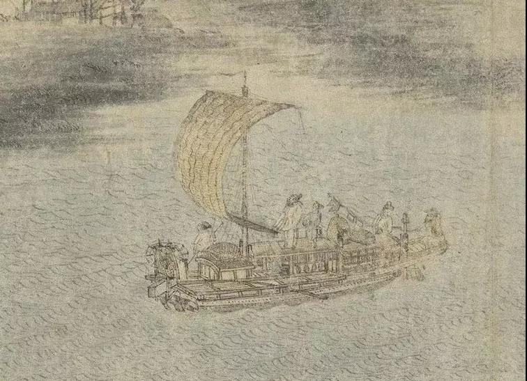 这件作品的尺寸也不大,但画中的景物用笔极其细腻,写实严谨。凡船只结构,山寺、野店等建筑,无不描绘精确,栩栩如生。