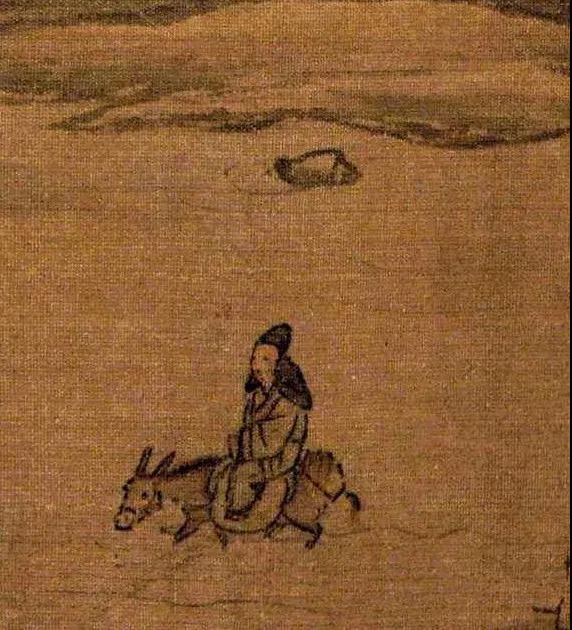 在这么一幅小画上,人物的神态、动态刻画的十分微妙。与范宽不同,朱锐的“行旅”更加突出的是旅途中的劳累,骑毛驴的文人身体松垮,目光有些涣散,赶路的辛苦一览无余。