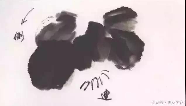 3.调重墨接第一遍墨迹,中、侧锋并用顺势补笔,使墨色同第一遍自然渗化,溶入一体;