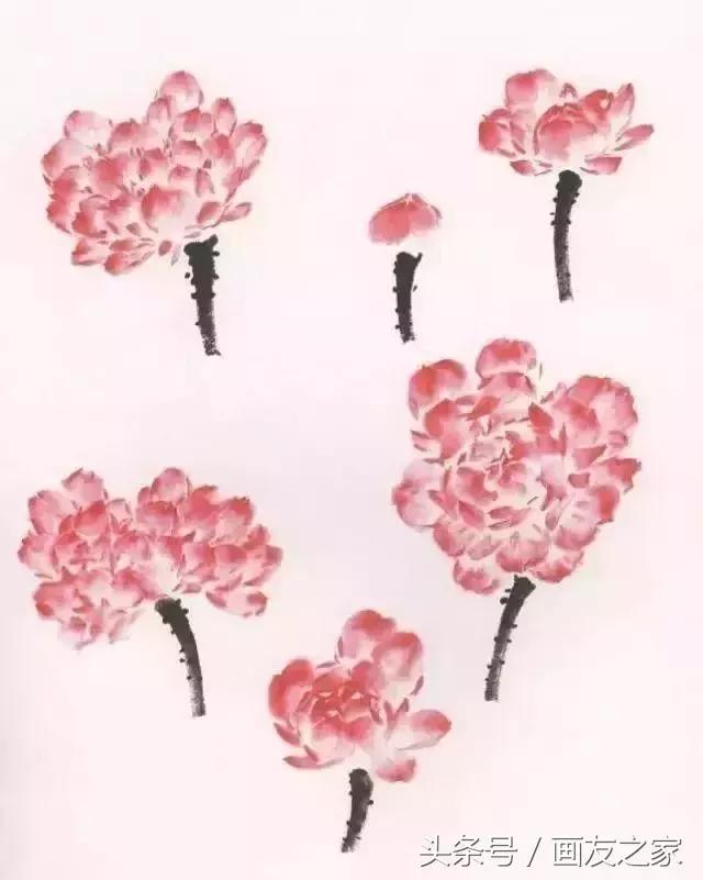 勾花墨色不宜太重,用笔要中侧锋并用,行笔要灵活多弯,才生动有致。