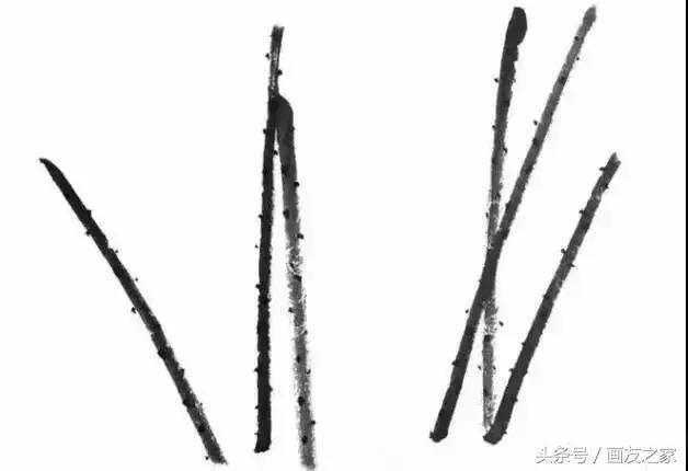 梗在画面中起支撑作用,墨色要根据画面的要求,可重可淡,用墨含水量要少,以中锋用笔,笔以直为主,笔笔送到,要直中有曲,弯而不软,才刚劲有力。