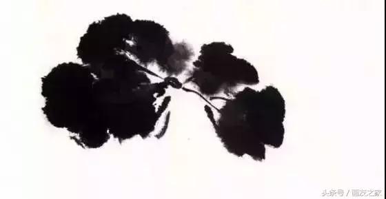 画侧叶时,可用淡墨直接勾画出叶盖背面的筋脉,也可用淡墨先勾勒出背面叶的形状,再点厾淡墨色铺画,然后用深墨画正面。但要注意正、背面叶要有大小块面的区别,不能均等,这样才能有正、背面的形态透视变化,才能拉开距离,有空间层次感。