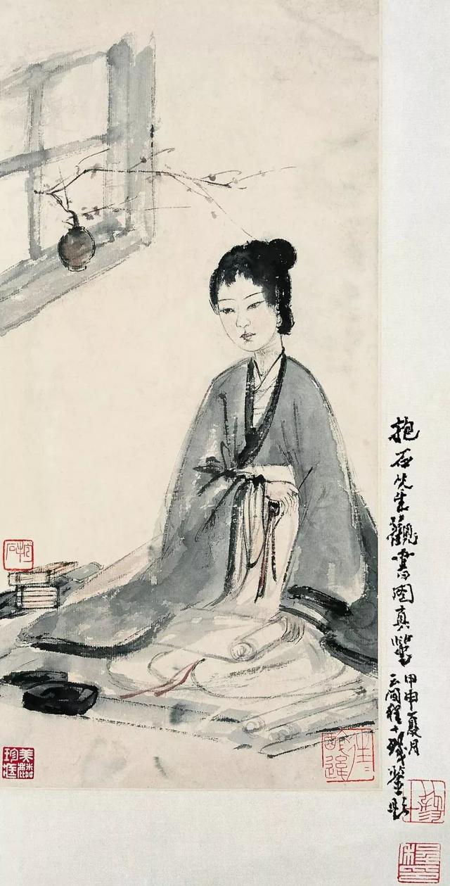 近现代 傅抱石(1904-1965) 观书图 设色纸本 38cmx18