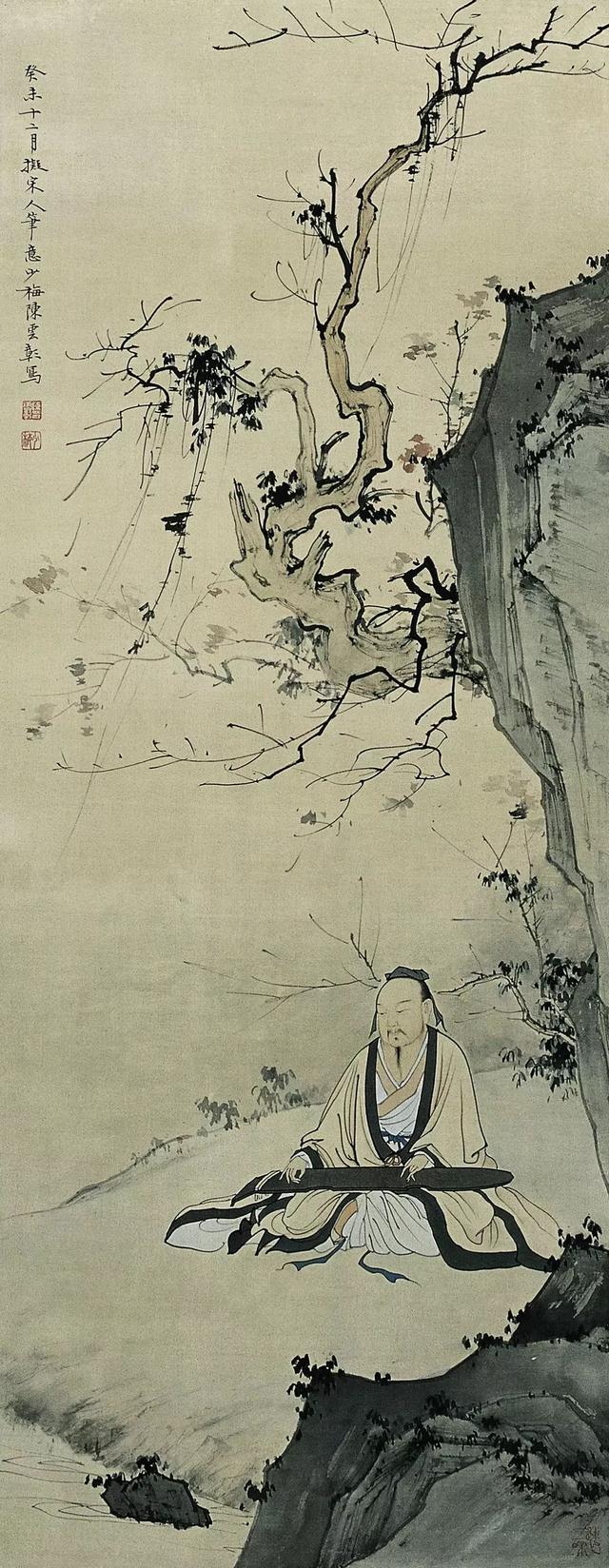 近现代 陈少梅(1909-1954) 临溪抚琴图 设色纸本 88cmx35cm
