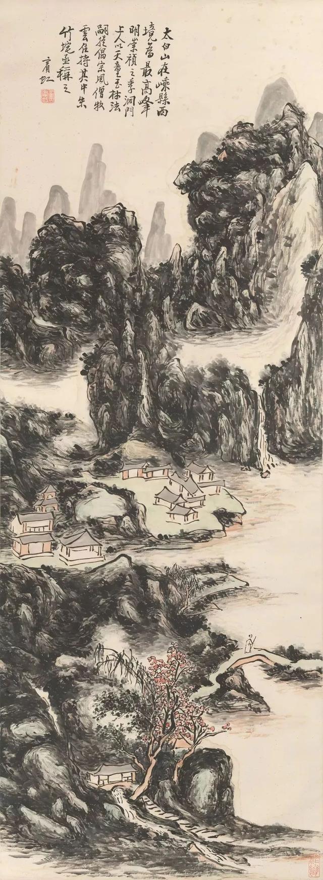 近现代 黄宾虹 (1865-1955) 山水图 立轴 设色纸本 177cmx68cm