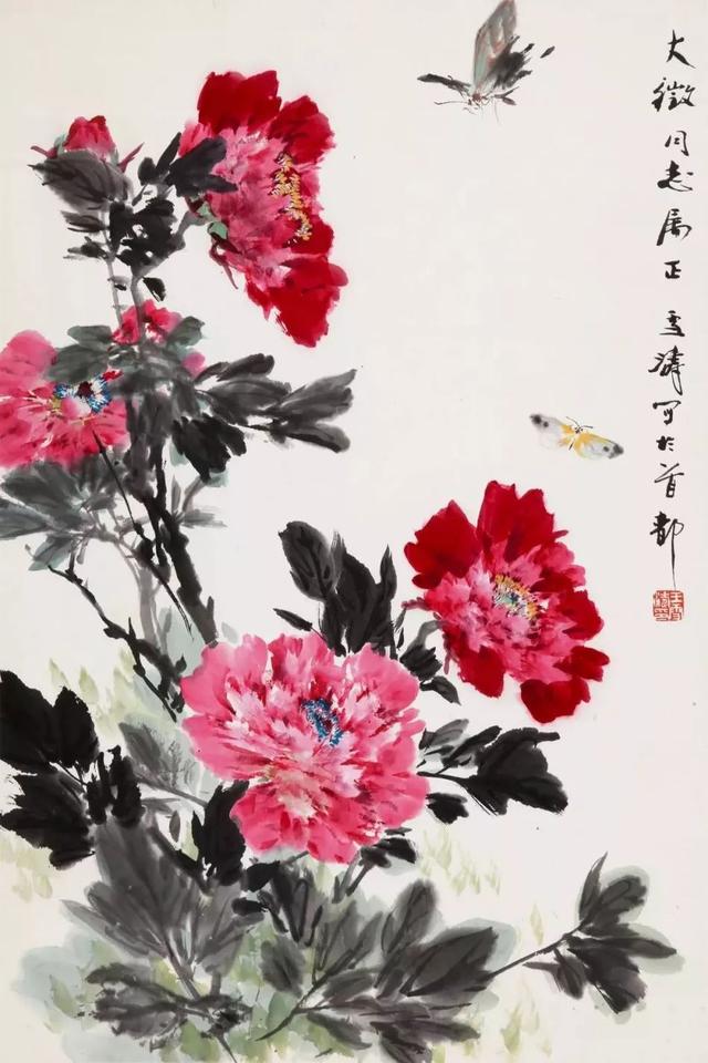 近现代 王雪涛(1903-1982) 牡丹蝴蝶 立轴 设色纸本 67cmx44cm