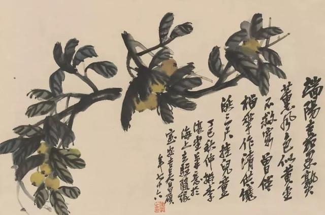 齐白石主张艺术“妙在与不似之间”,衰年变法,形成独特的大写意国画风格,开红花墨叶一派,尤以瓜果菜蔬花鸟虫鱼为工绝,兼及人物、山水,名重一时,与吴昌硕共享“南吴北齐”之誉;以齐白石纯朴的民间艺术风格与传统的文人画风相融合,达到了中国现代花鸟画最高峰。