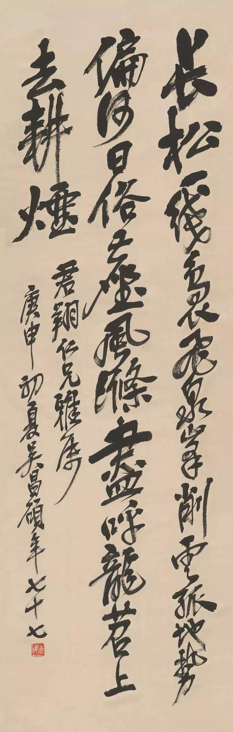 近现代 吴昌硕( 1844-1927) 书法 立轴 设色纸本 134cmx33cm