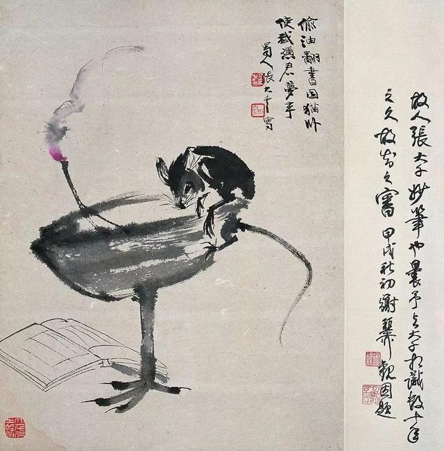 近现代 张大千(1899-1983) 灯鼠图 设色纸本 49cmx37cm