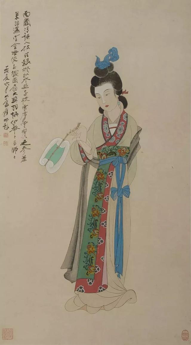 近现代 张大千(1899-1983) 仕女图 设色纸本 96cmx53cm