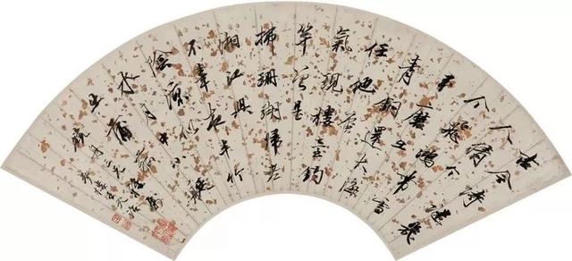 清 王文治 (1730-1802) 行书书法 扇面 水墨洒金纸本