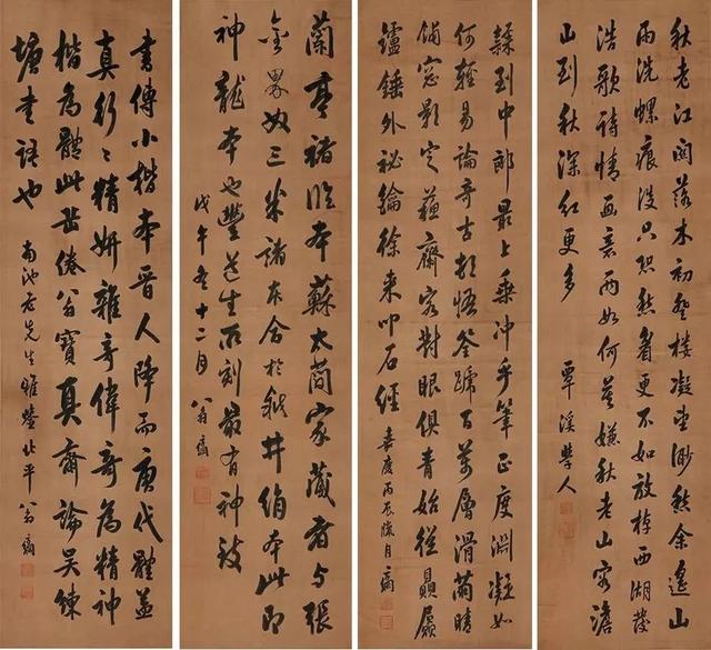 清 翁方纲(1733-1818) 行书四屏 水墨绢本 119cmx32cmx4