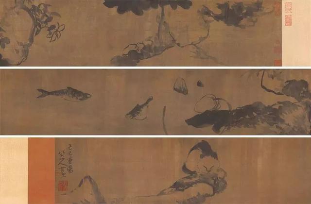 清 朱耷(1626-1705) 荷塘拾趣图 手卷 绢本水墨 29cmx300cm