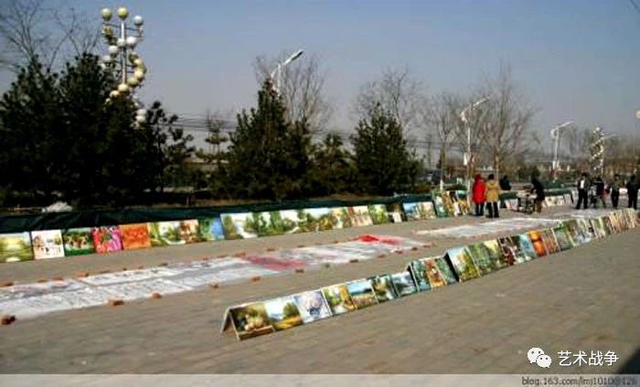 (宋庄的地摊油画,宋庄僧多粥少,和尚泛滥没水喝,最终还是地摊卖画救了宋庄的书画家。)