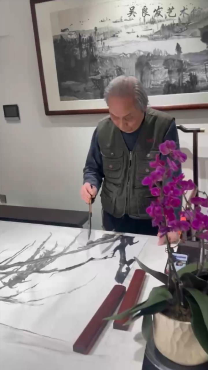 欢迎芳草书画院山水画画家张晓玲副院长,田亚明副院长,书法家李建国秘书到访吴良发艺术馆