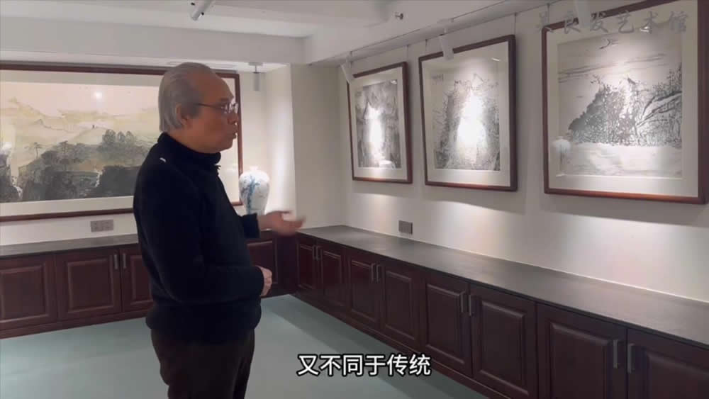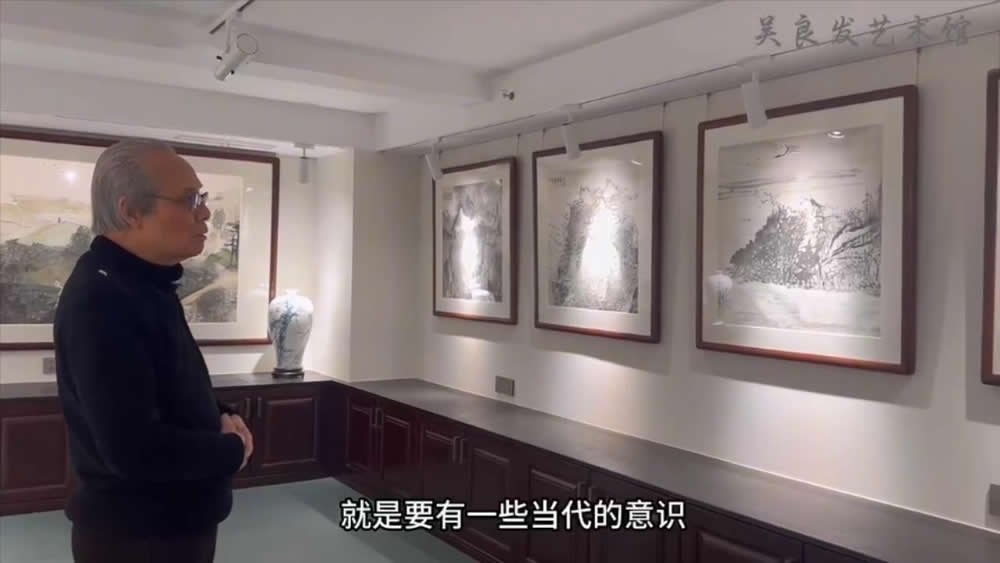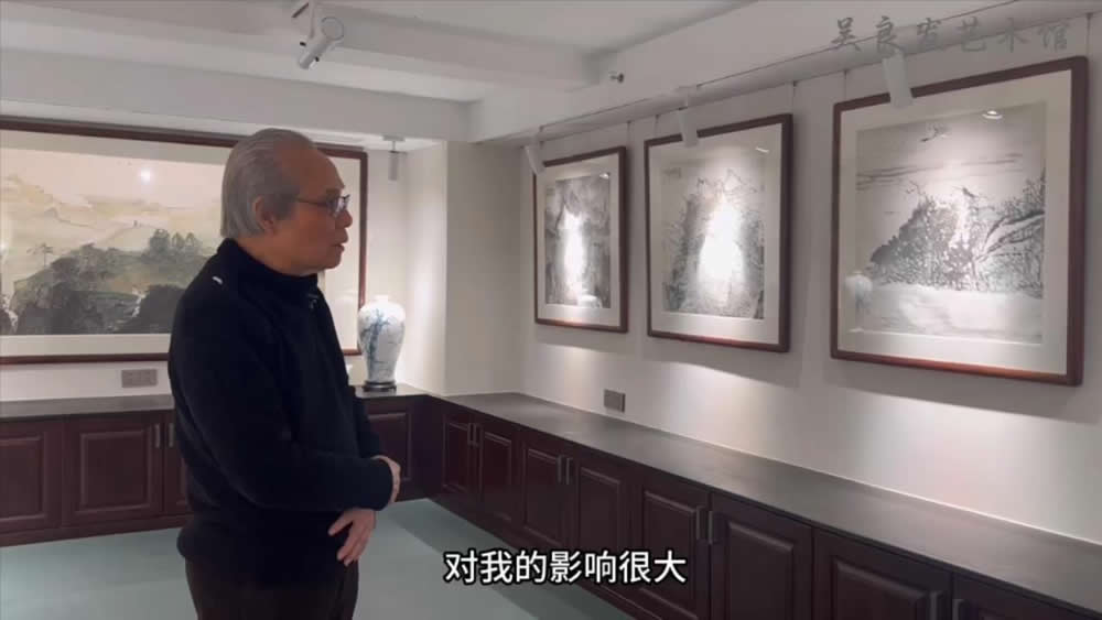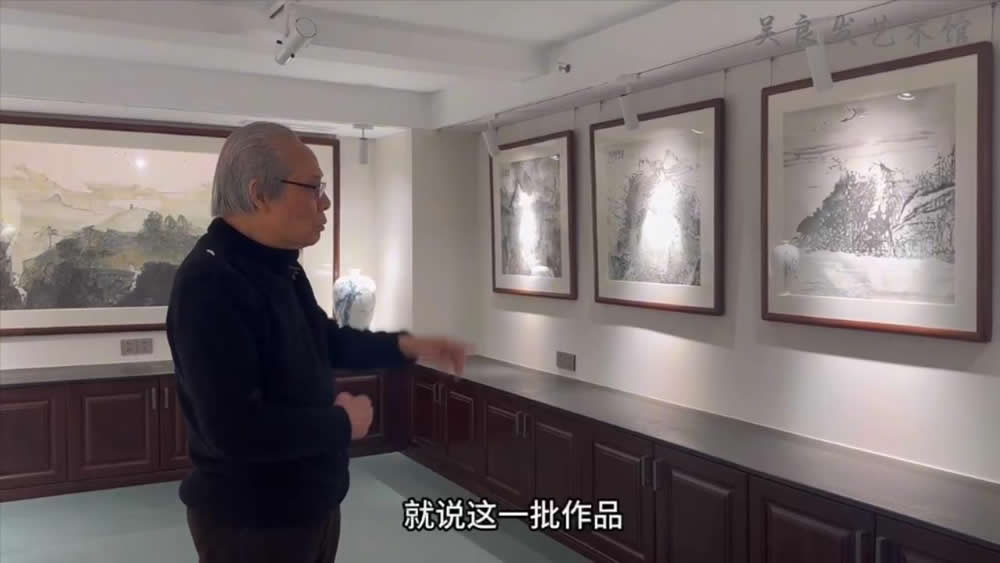 欢迎芳草书画院山水画画家张晓玲副院长,田亚明副院长,书法家李建国秘书到访吴良发艺术馆