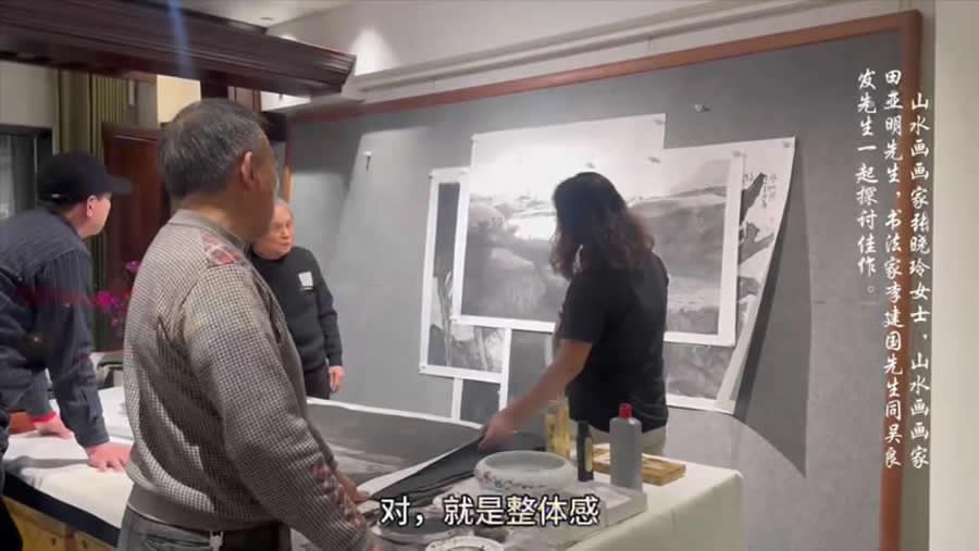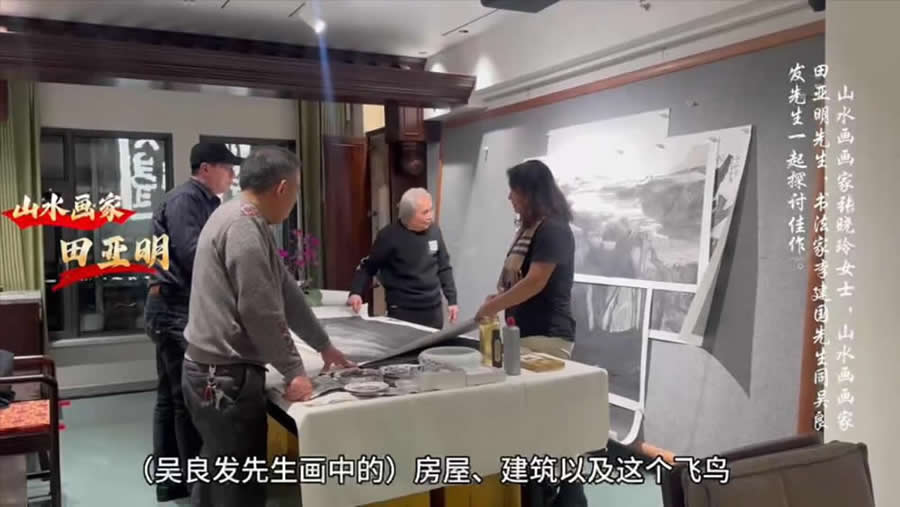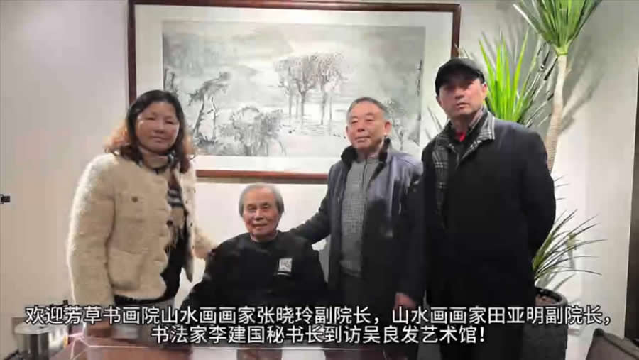 欢迎芳草书画院山水画画家张晓玲副院长,田亚明副院长,书法家李建国秘书到访吴良发艺术馆